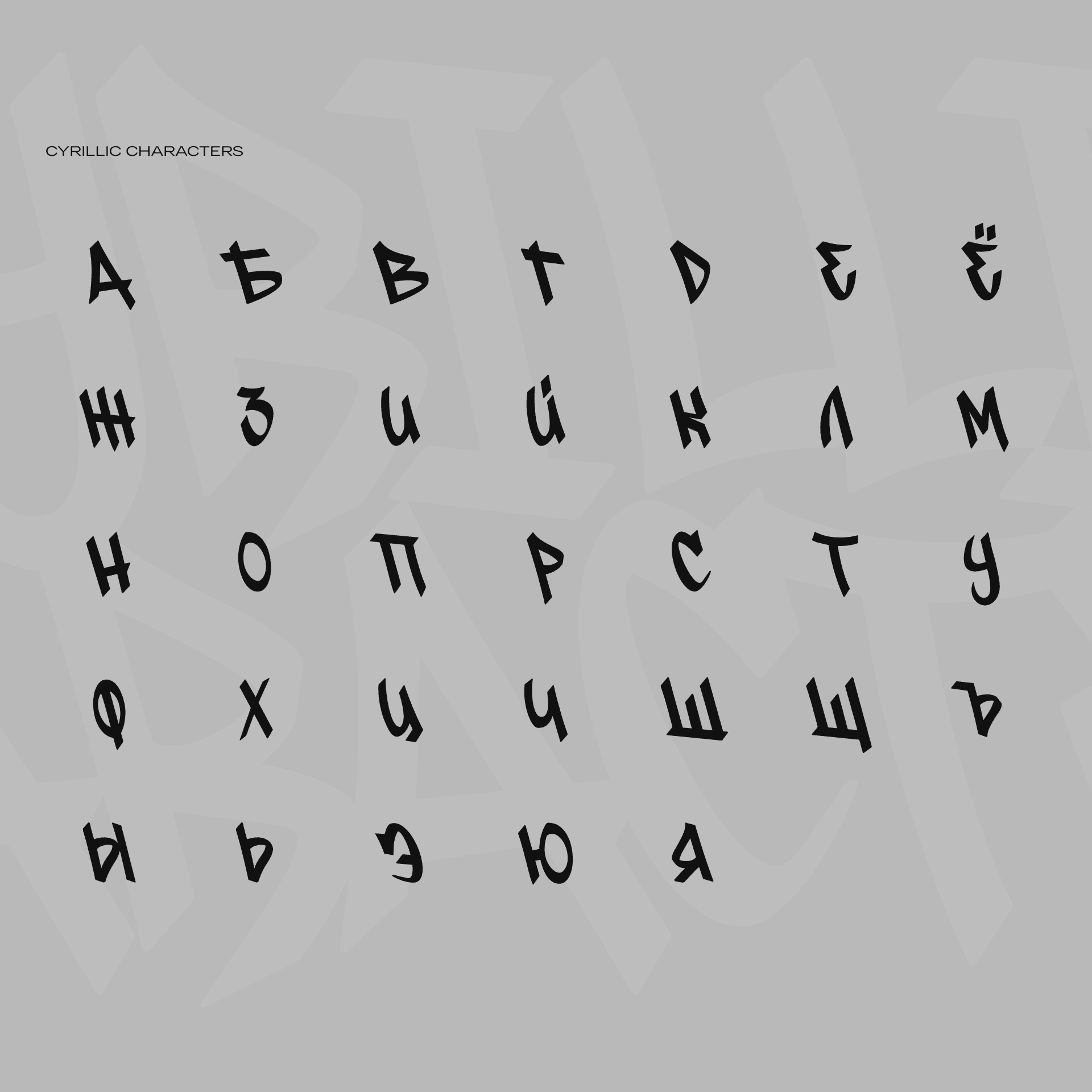 Includes Latin and Cyrillic characters.